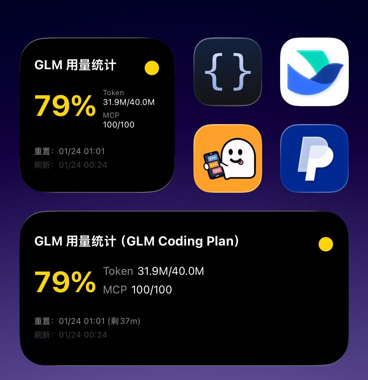 智谱 GLM Coding Plan 用量查询 - iOS小组件